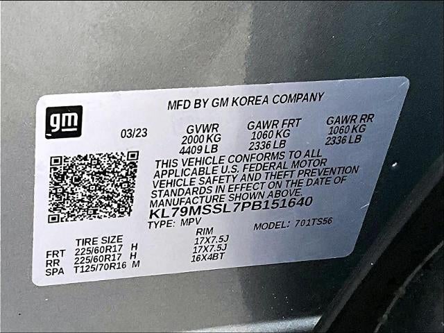 CONVENIENCE PACKAGE includes (C68) automatic climate control air conditioning, (UIJ) 8 diagonal color touchscreen display, (USS) one type-A and one type-C charging only USB ports, (KI6) 120-volt power outlet, (DD8) inside rearview auto-dimming mirror and (DMS) driver and front passenger illuminated vanity mirrors, covered, sliding visors, DRIVER CONFIDENCE PACKAGE includes (UKC) Lane Change Alert with Side Blind Zone Alert, (UFG) Rear Cross Traffic Alert and (UD7) Rear Park Assist (Beginning with start of production through November 28, 2022, vehicles will be forced to include (00Y) Not Equipped with Rear Park Assist, which removes Rear Park Assist. See dealer for details or the window label for the features on a specific vehicle. Beginning December 26, 2022, certain vehicles will be forced to include (060) Not Equipped with Rear Park Assist, which removes Rear Park Assist. Does not include later dealer retrofit. See dealer for details or the window label for the features on a specific vehicle.), AUDIO SYSTEM, CHEVROLET INFOTAINMENT 3 SYSTEM 7 diagonal color touchscreen, AM/FM stereo. Additional features for compatible phones include: Bluetooth® audio streaming for 2 active devices, voice command pass-through to phone, Apple CarPlay® and Android Auto® capable. (8 screen when (ZL3) Convenience Package and (ZL5) Driver Confidence Package are ordered.) (STD), ENGINE, ECOTEC 1.3L I3 TURBO DOHC SIDI WITH VARIABLE VALVE TIMING (VVT) (155 hp [115 kW] @ 5600 rpm, 174 lb-ft torque [236 N-m] @ 1600 rpm) (STD), TRANSMISSION, 9-SPEED AUTOMATIC (STD). Chevrolet ACTIV with Sterling Gray Metallic exterior and Jet Black with Arizona accents interior features a 3 Cylinder Engine with 155 HP at 5600 RPM*.